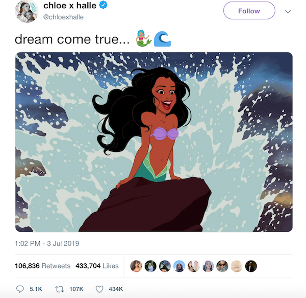 Роль Ариэль получила темнокожая 19-летняя начинающая актриса Хэлли Бэйли.