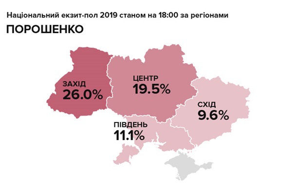 Действующего президента Петра Порошенко поддержали на Западе и в Центре. Лидера Батькивщины Юлию Тимошенко - также на Западе и в Центре.