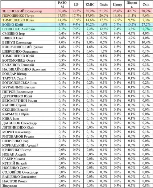 За Зеленского голосовали на Юге и Востоке, за Порошенко и Тимошенко - на Западе и в Центре.