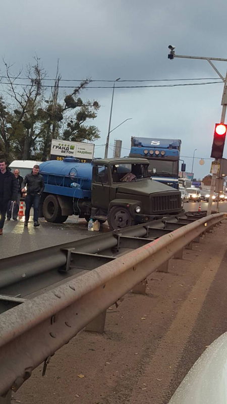 Сегодня в Киеве произошла крупная авария - грузовая фура столкнулась с водовозом, частично заблокировав движение по Житомирской трассе столицы. Об этом сообщают очевидцы аварии, публикуя снимки с места происшествия. Стало известно, что в результате ДТП серьезно пострадал водитель водовоза, которого скорая забрала в больницу. На место происшествия прибыли сотрудники дорожной полиции.