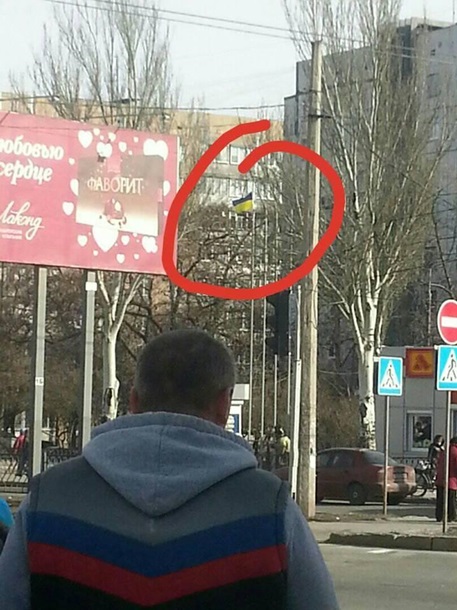 Флаг Украины подняли неизвестные в микрорайоне Мирный в неподконтрольном Киеву Донецке. Об этом сообщает издаие ОстоВ со ссылкой на очевидцев.