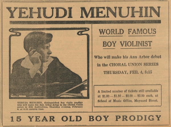 З нагоди ювілею від дня народження великого скрипаля Ієгуді Менухіна, Міжнародна Мистецька Асоціація AIDA організовує масштабний культурний проект «Менухін-100». Вперше в Україні, в рамках світового турне концерти відбудуться в Одесі (15 квітня 2016 року), Львові (18 квітня) та заключний святковий захід у Києві (22 квітня).