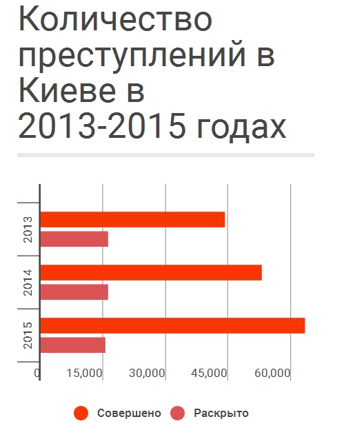 После начала войны в Донбассе в Киеве значительно выросло число совершенных преступлений. Об этом свидетельствуют данные, которые в ответ на запрос предоставило Главное управление Национальной полиции в городе Киеве.