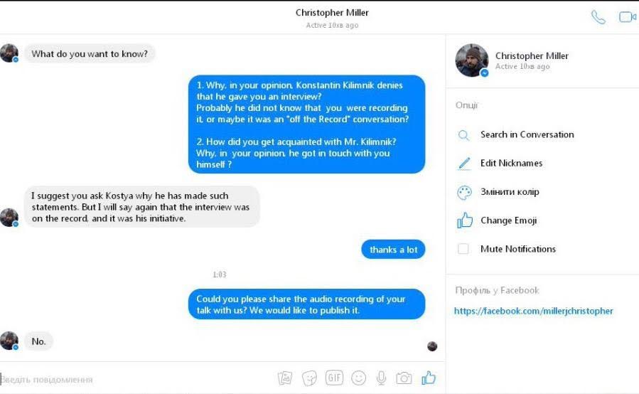 Но на нашу просьбу подтвердить эти слова, что интервью таки состоялось, и дать хотя бы маленький фрагмент аудиозаписи Миллер ответил категорически - «Нет».