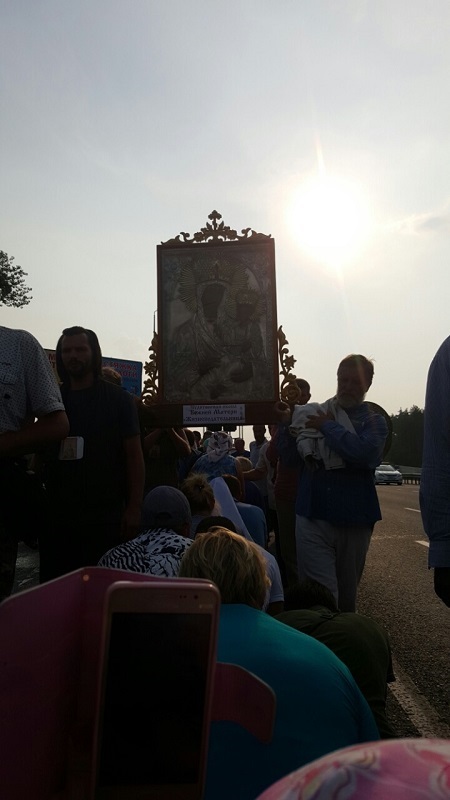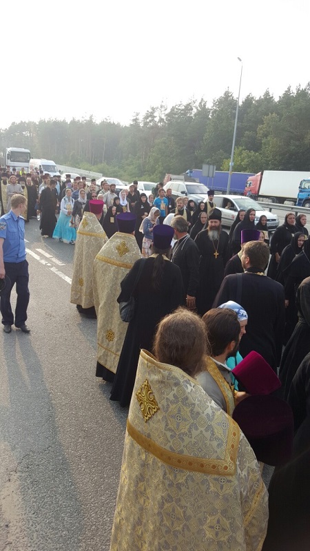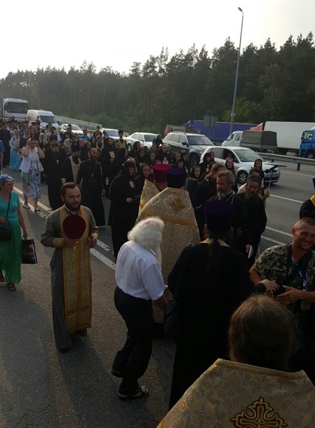 Міліція знущається над старими і дітьми, яких тисячі в Хресній ході. Після того, як людей 5 годин протримали на спекоті в селі Дмитрівка по Житомирській трасі і після того, як люди нарешті дісталися до Стоянки, їм знову перегородили дорогу автобусами і змусили йти в обхід.