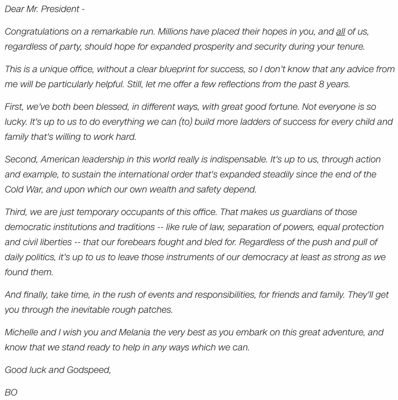 Текст письма Дональду Трампу от Барака Обамы